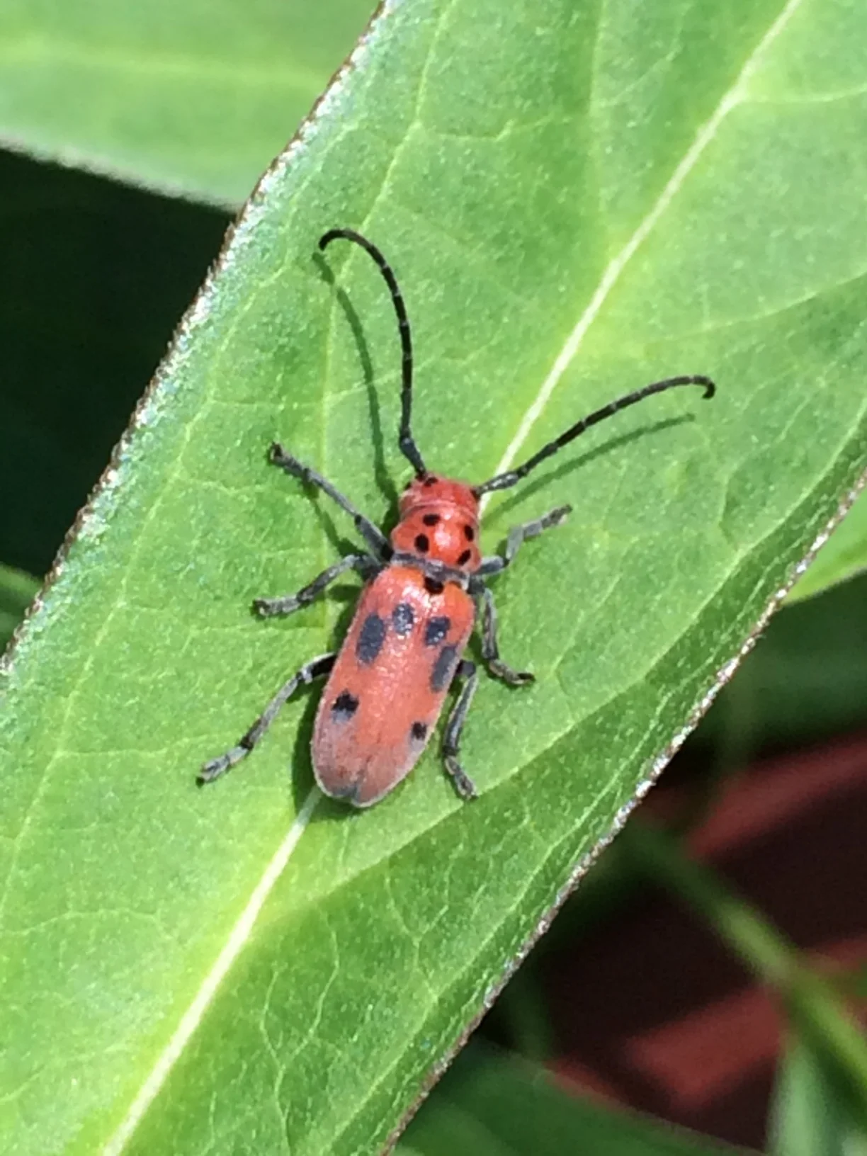 A red milkweed beetle. September 30, 2016 The home of bald-faced hornets. ← I pulled around to the other side to see if it were cheaper. It wasn't.I hope that a black leaf crossing my path brings good luck. →
