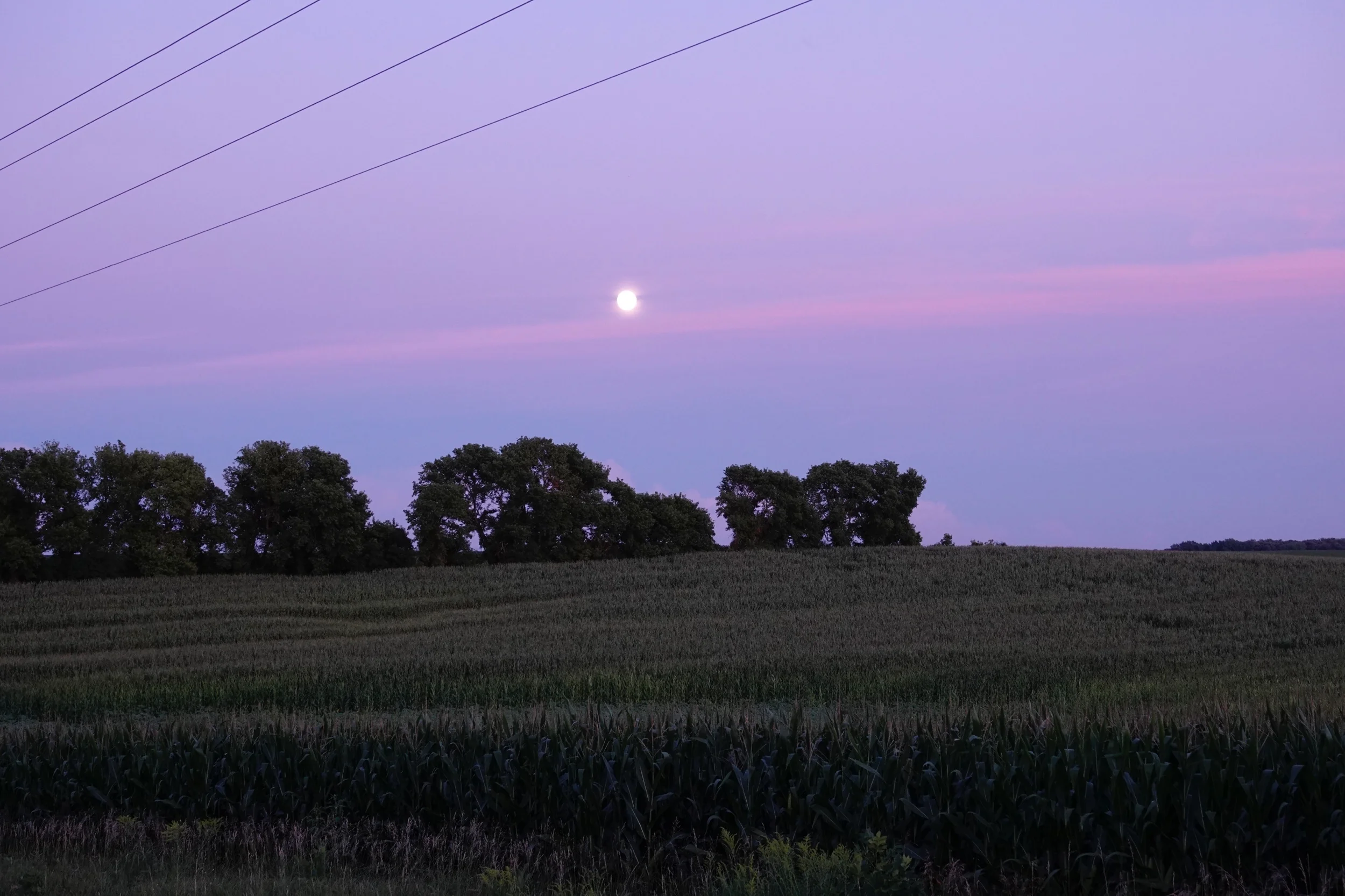 The moon causing waves over a cornfield.