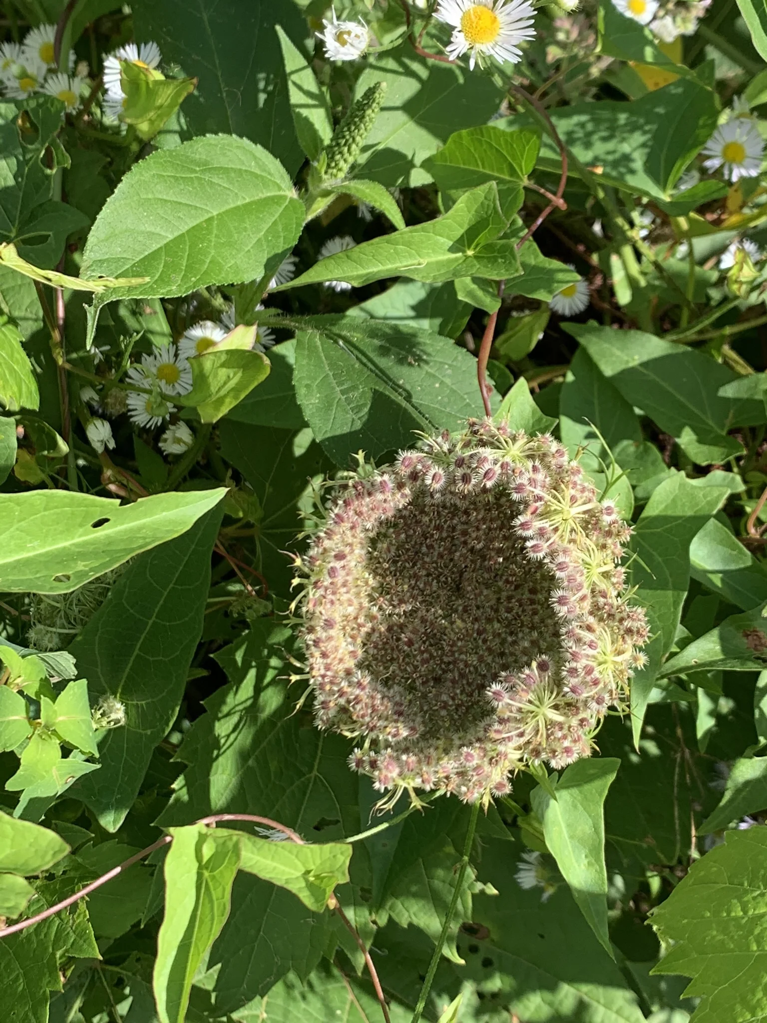 It may look like a bird’s nest, but it’s Queen Anne’s Lace. Hal Borland wrote that the name pays tribute to the flat-topped heads of florets, dainty as fine lace and pretty enough to deck a queen.