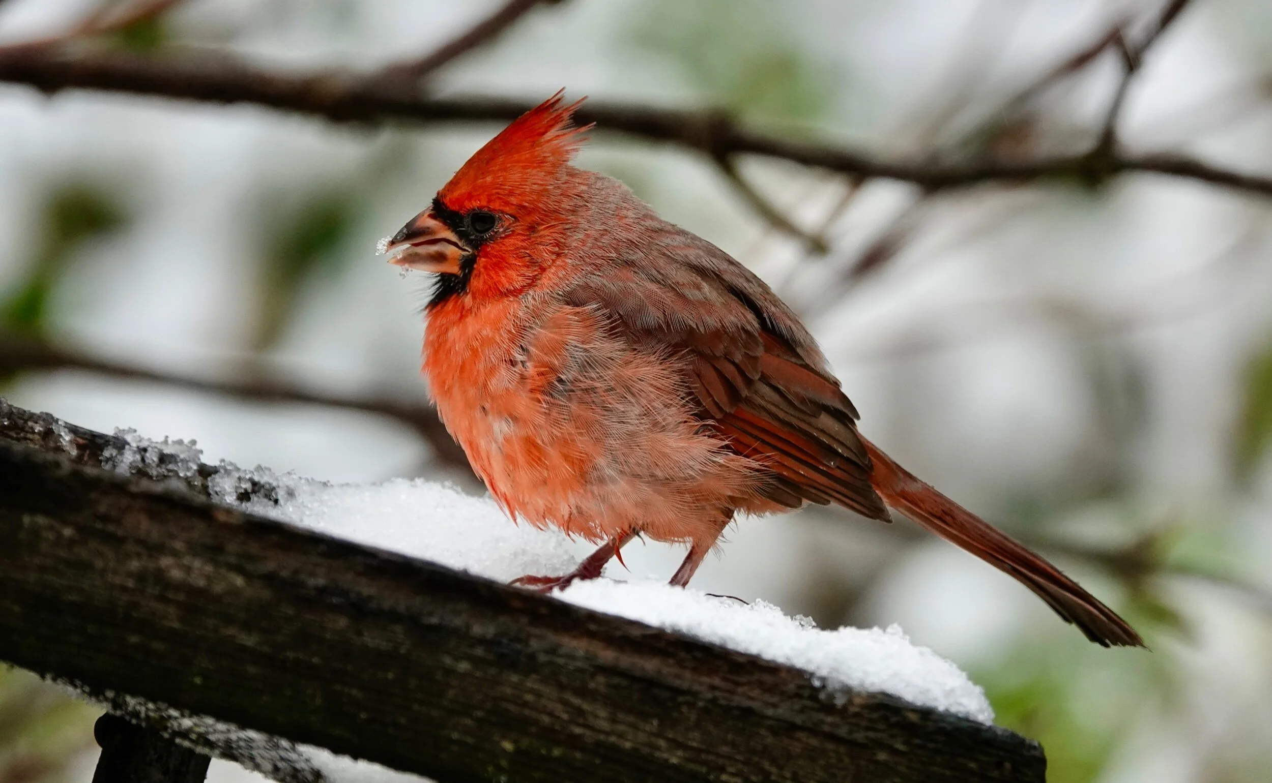 Red and white. Fight, fight, fight. A cardinal in the October snow.