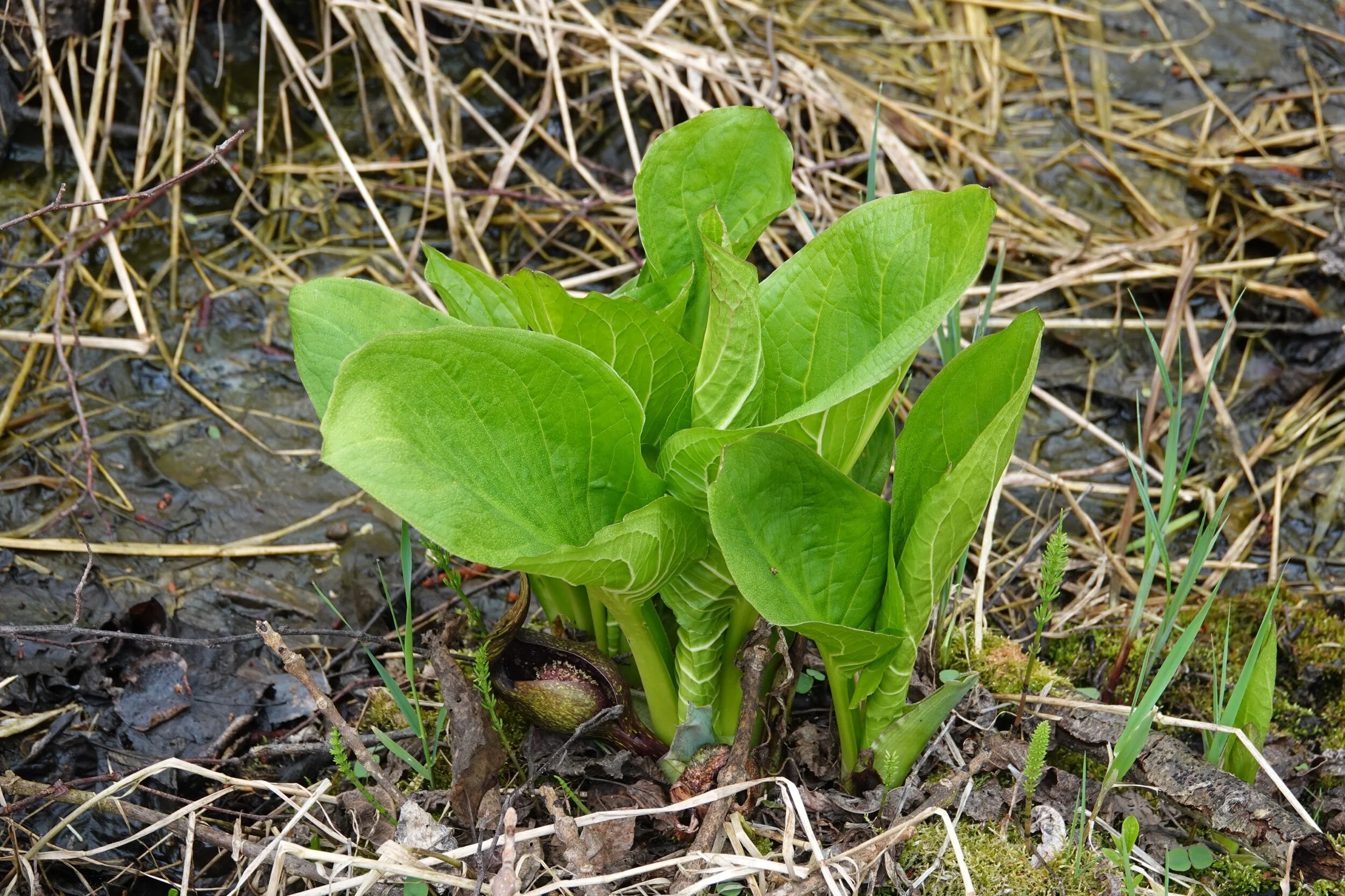When skunk cabbage sprouts in the spring, the heat of cellular respiration from its rapid growth melts the snow around it.