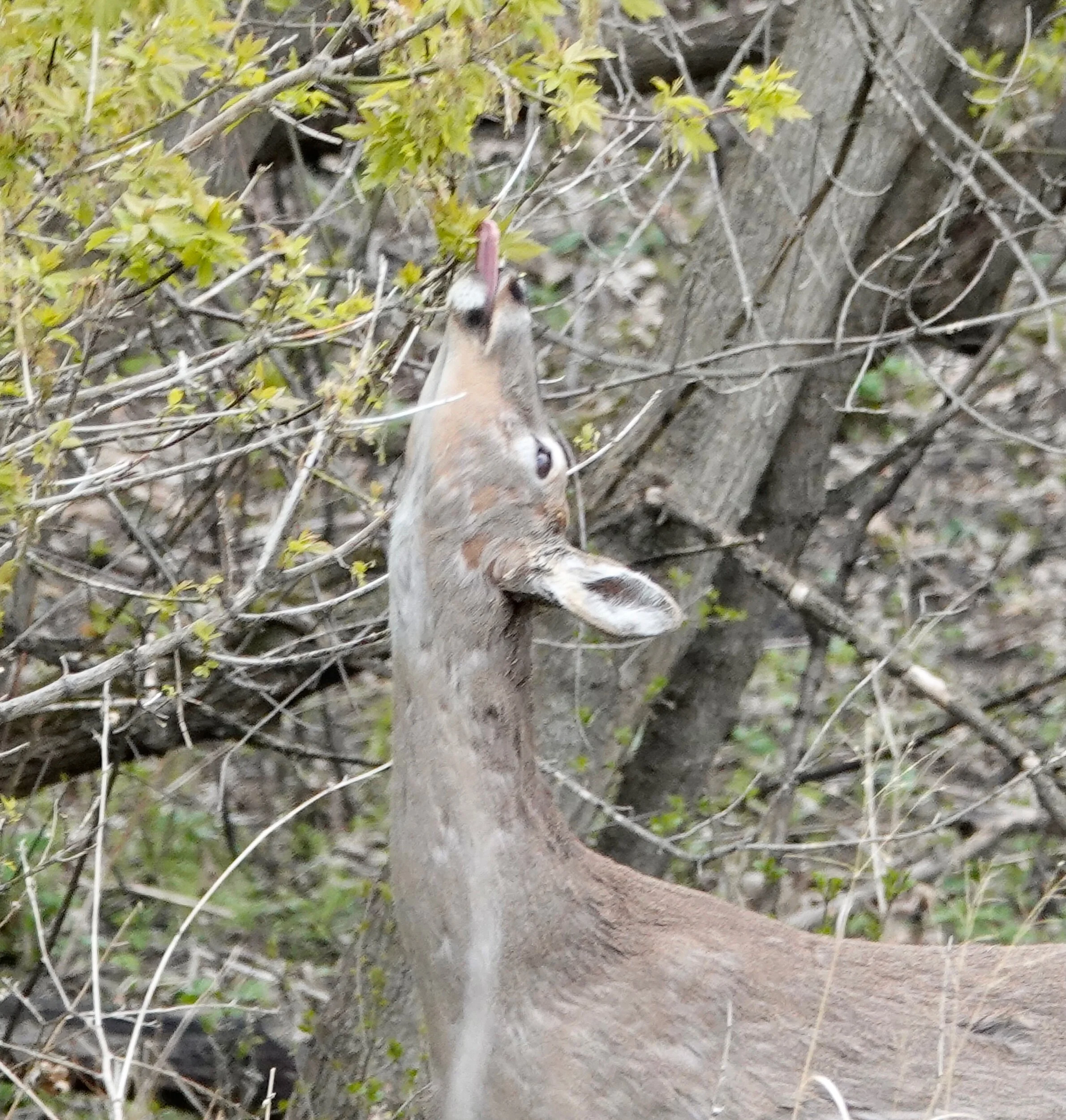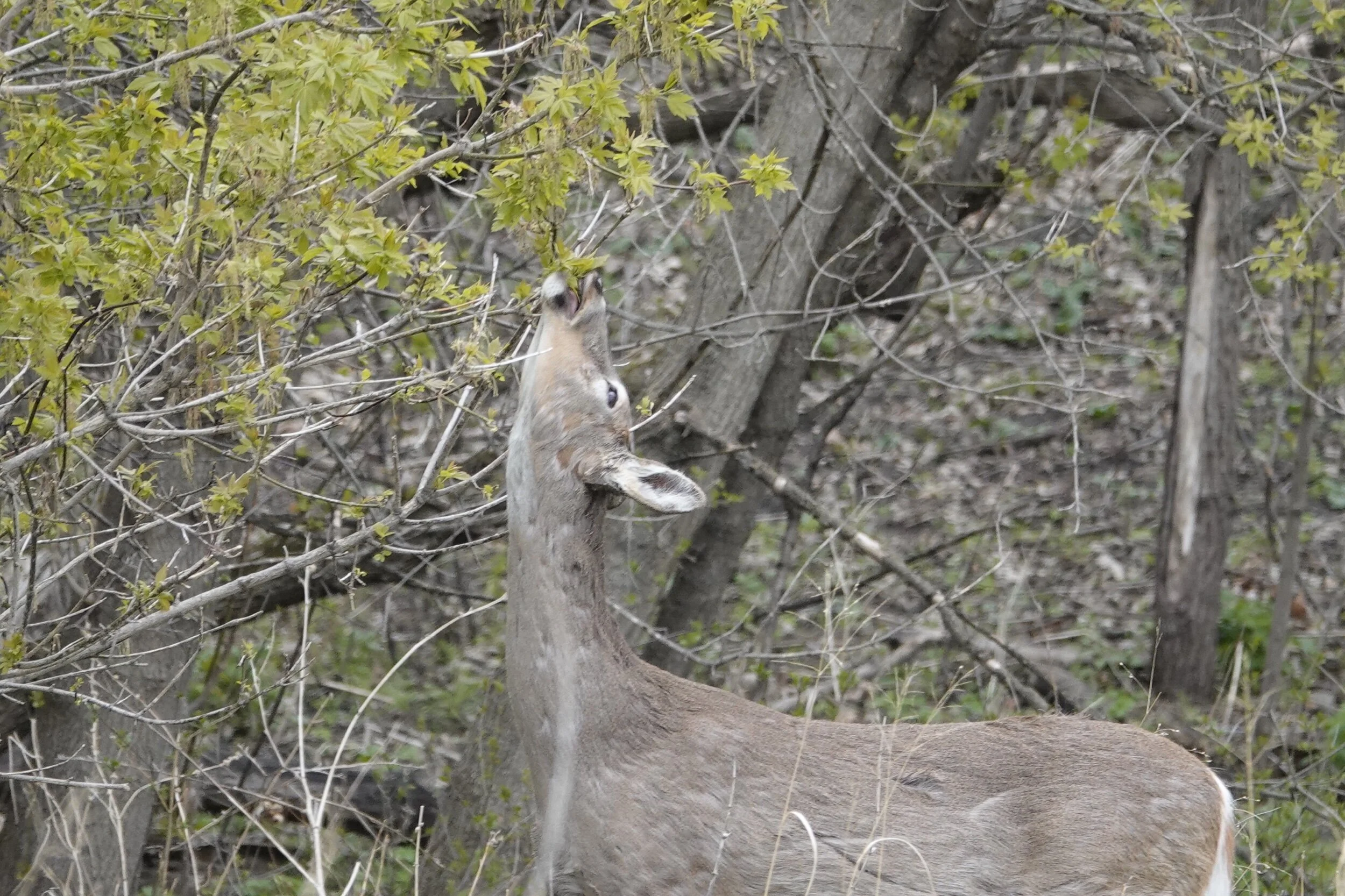 Things are looking up for a deer that finds tasty tree leaves.