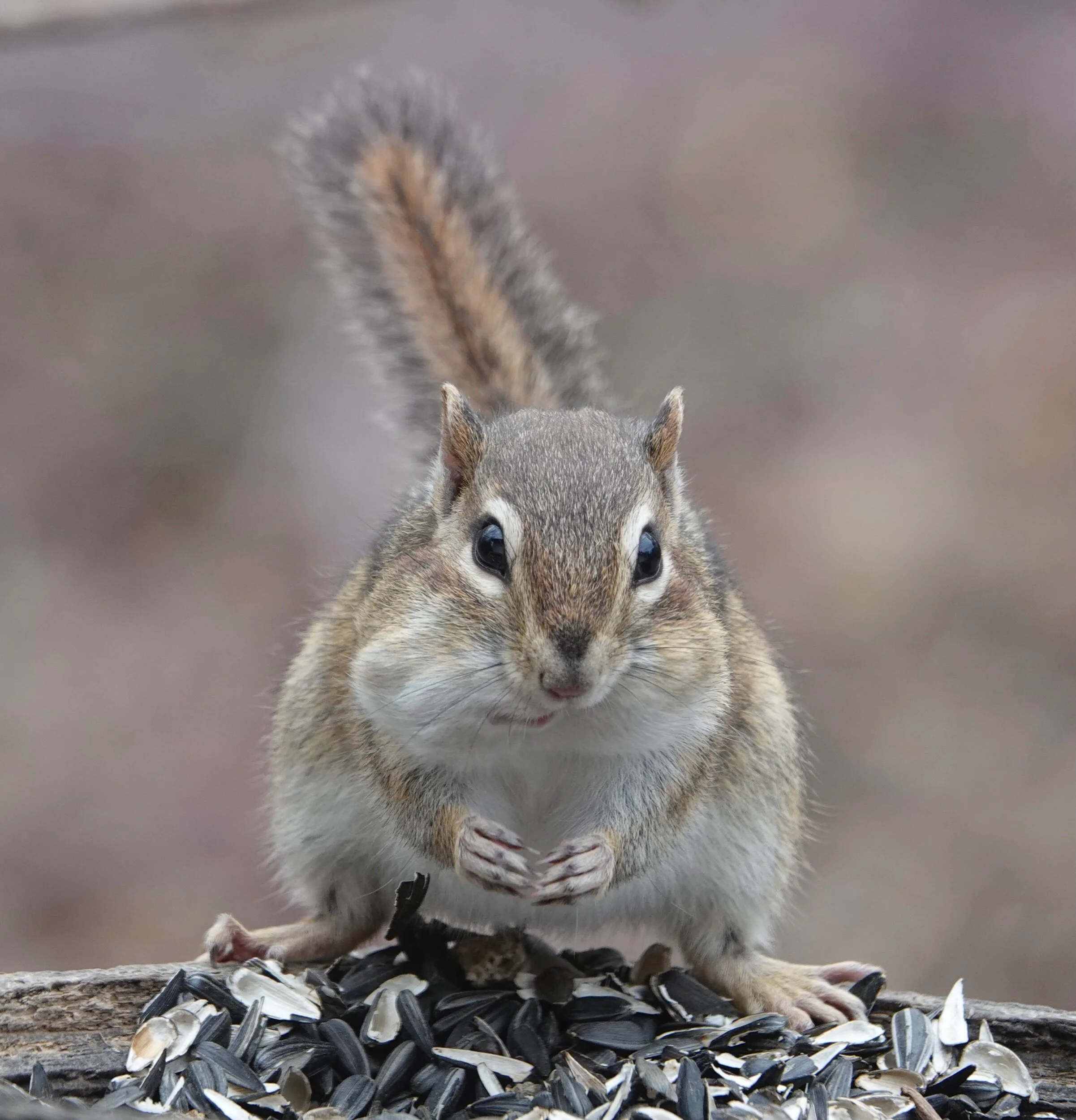 A charming eastern chipmunk, though less than cherubic, cheers me.