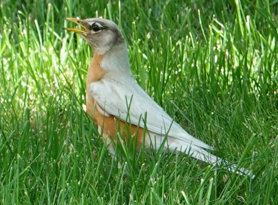 A leucistic robin in the grass. When we get the band back together, that’s what we’re going to call ourselves.