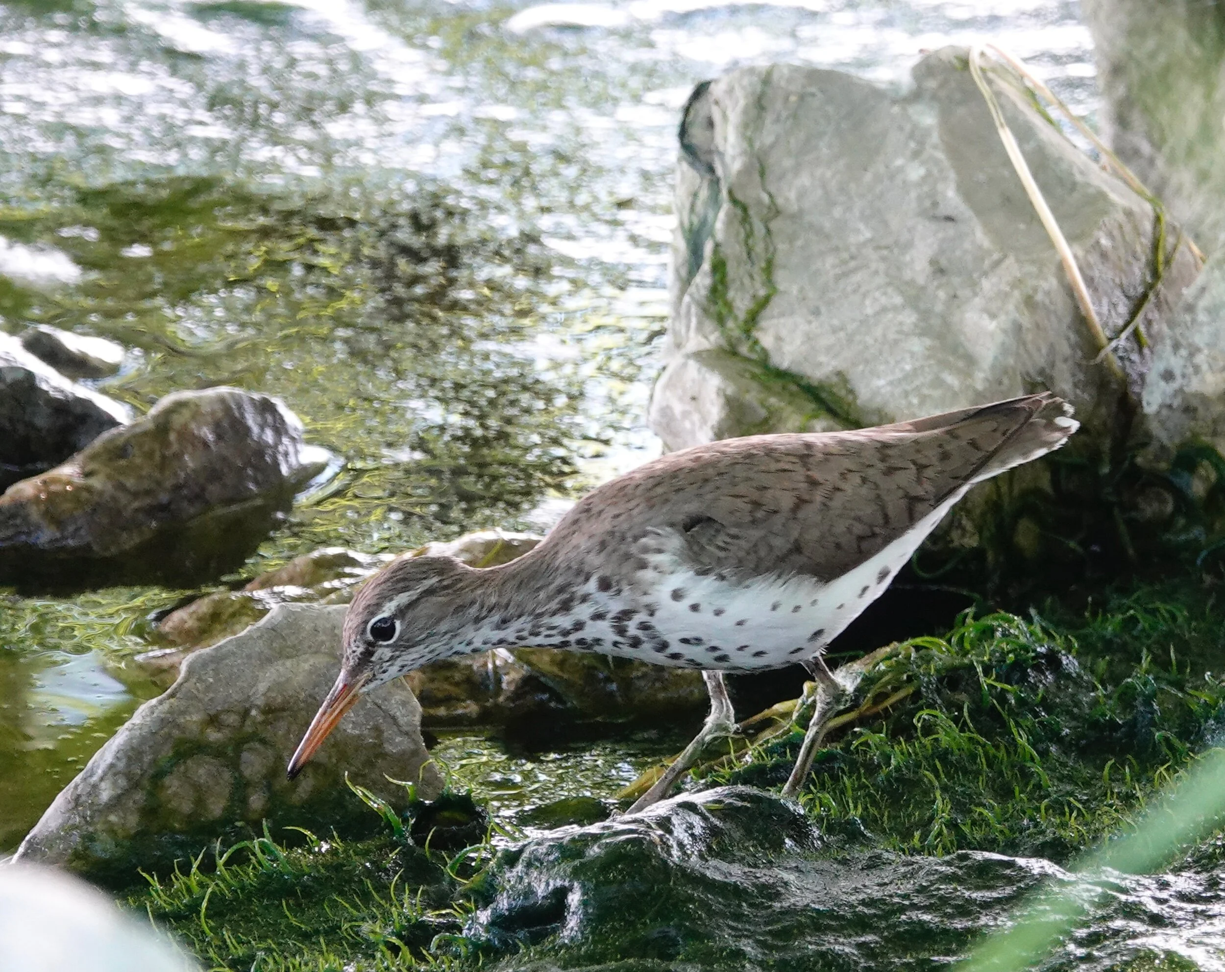 Bobbing behavior, stiff flight, it’s a spotty. A Spotted Sandpiper.