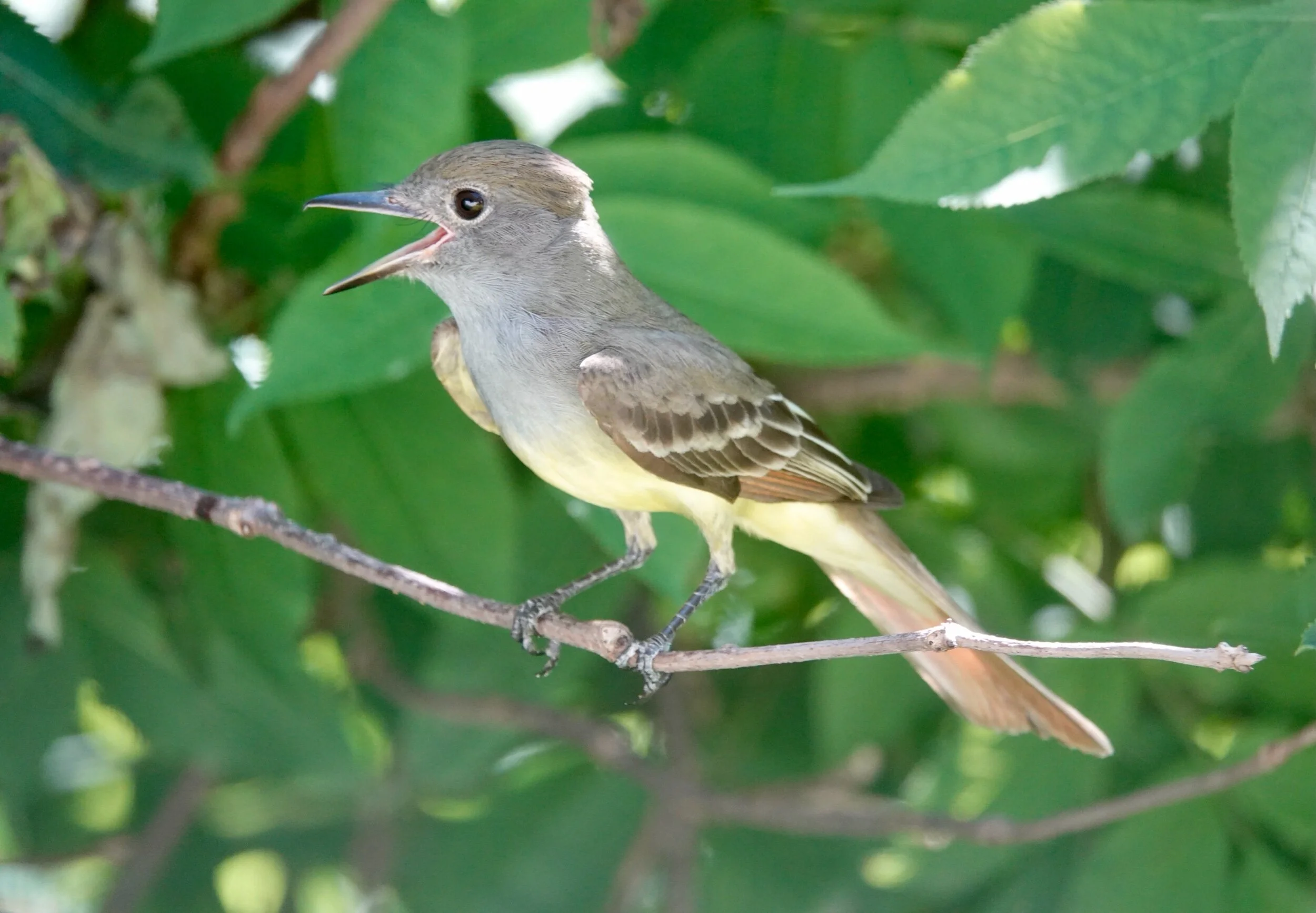 A 100-degree day is hard on Minnesotans, including this Great Crested Flycatcher.