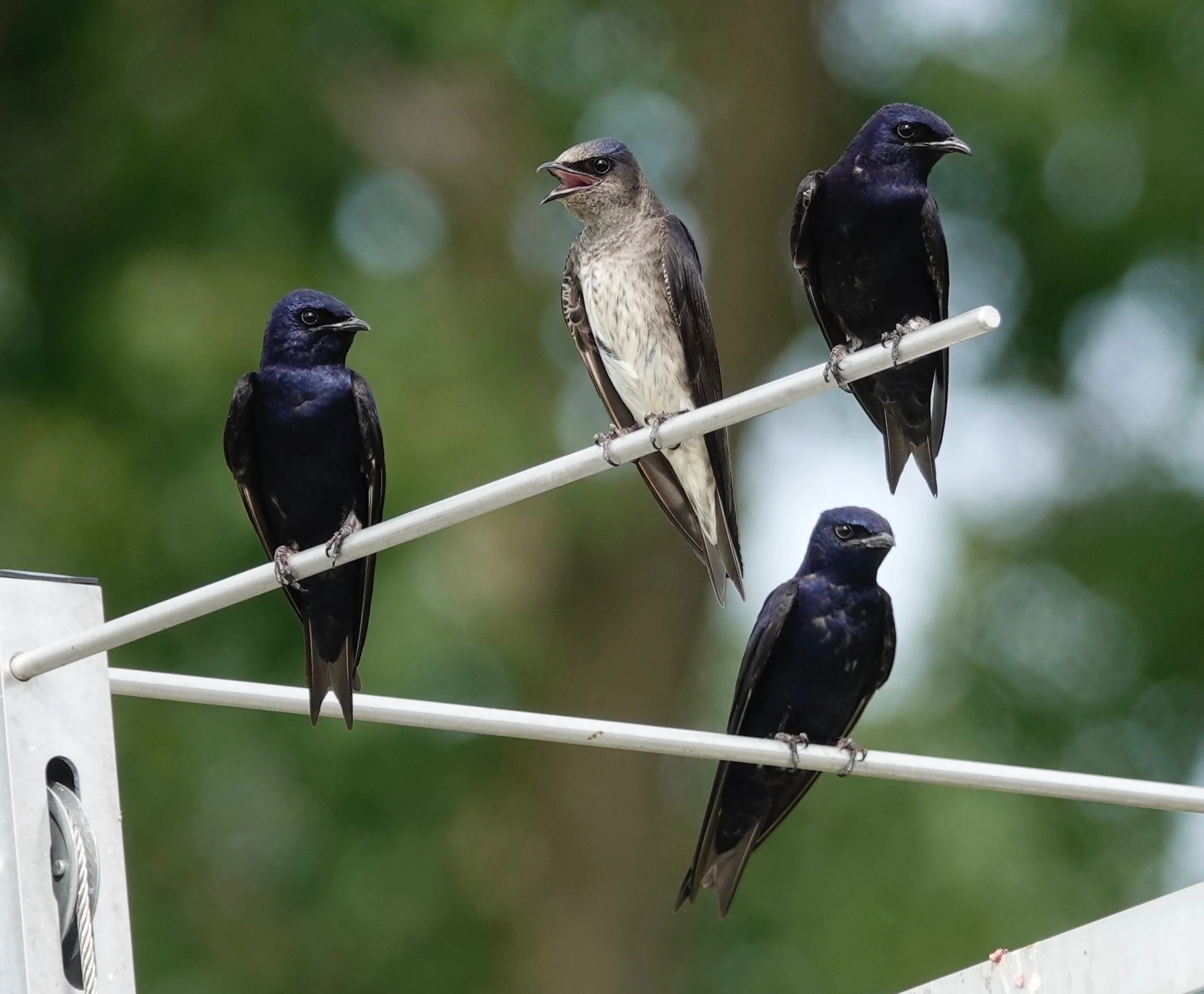 “When do purple martins leave Minnesota?” They’re gone by early October. The best time to see purple martins at nest sites is May through late July. Roost sites are used from late July through early September. After the young are fledged, martins move to where they can gather at traditional pre-migratory roosts at night. They’re highly social during the non-breeding season and the roosts might contain thousands of birds. Purple martins winter in South America.