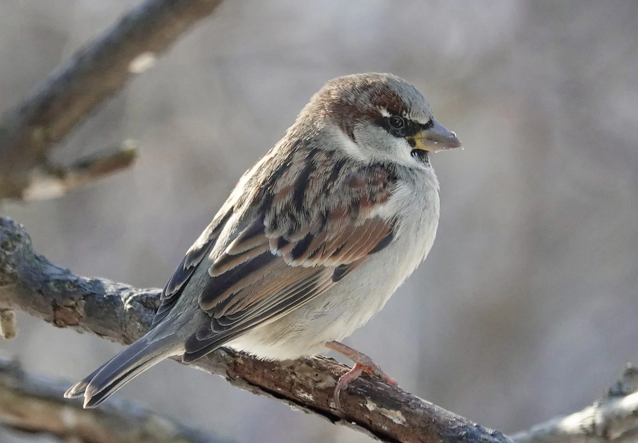 In my boyhood, they were called English sparrows. House sparrows are native to Eurasia and northern Africa, not to the United States. They were introduced in 1851-53 by Nicholas Pike, Director of the Brooklyn Institute, to rescue trees from caterpillars. More were released for pest control by other people in various parts of the country over the next 25 years. Photo of a male house sparrow by Al Batt.