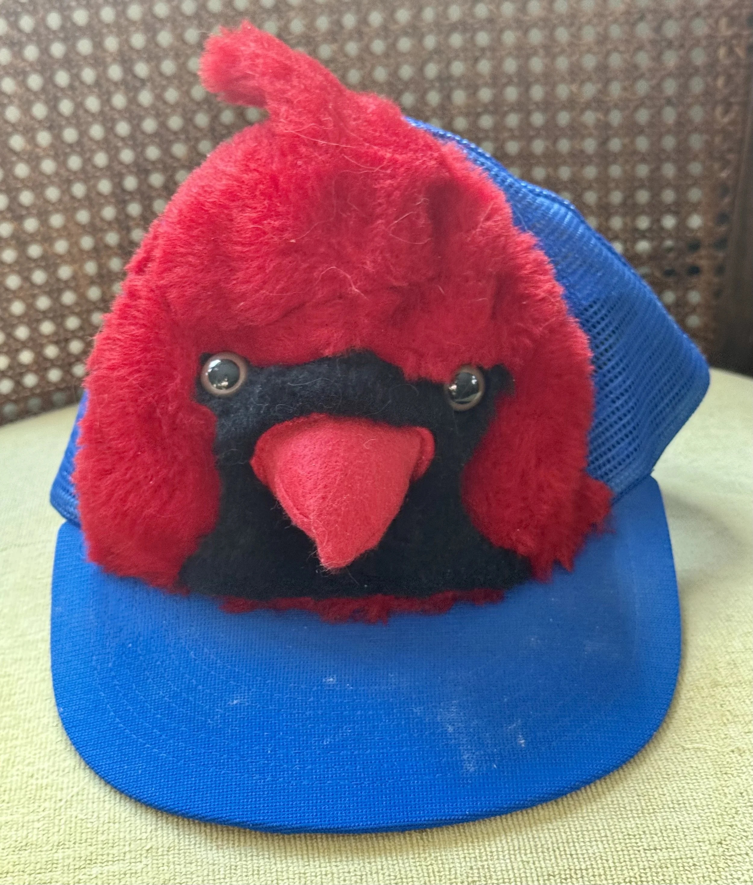 Friends gave me this fetching cap for Christmas. It’s making me more chirpful. Seeing a cardinal symbolizes spiritual messengers, lost loved ones visiting, hope, love, vitality, joy and renewal. Cardinals appear when angels are near. The redbird is a bright spot in winter. Put out sugar cookies to attract someone wearing this cap.