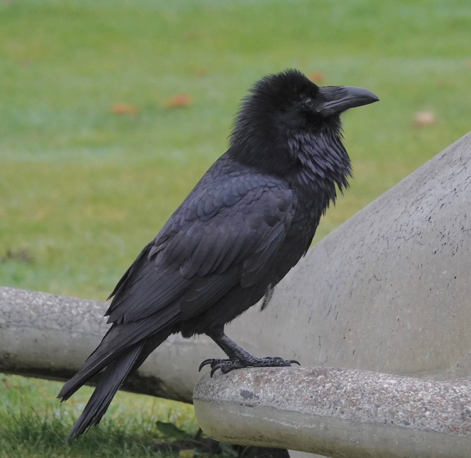 Common ravens are the largest species of Passeriformes in the world, an order commonly known as perching birds or songbirds. Ravens have wedge-shaped tails, shaggy throat feathers and deep croaking calls. They have a heavier bill than crows, which are smaller with fan shaped-tails. The raven is an opportunistic omnivore immortalized by "Quoth the Raven, 'Nevermore,'" a famous refrain from Edgar Allan Poe's poem, "The Raven." Photo by Al Batt.